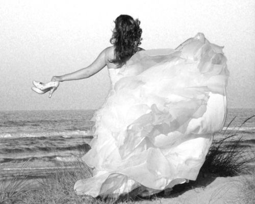 Comenzaba a obscurecer cuando me recuperé de la adrenalina y me decidí a bajar a la playa. El viento marino desordenó mi peinado perfecto. No podía imaginar una escena más grotesca que esa. Vestida de novia, sola en medio de la nada, caminando por la arena con una botella de champaña en la mano.